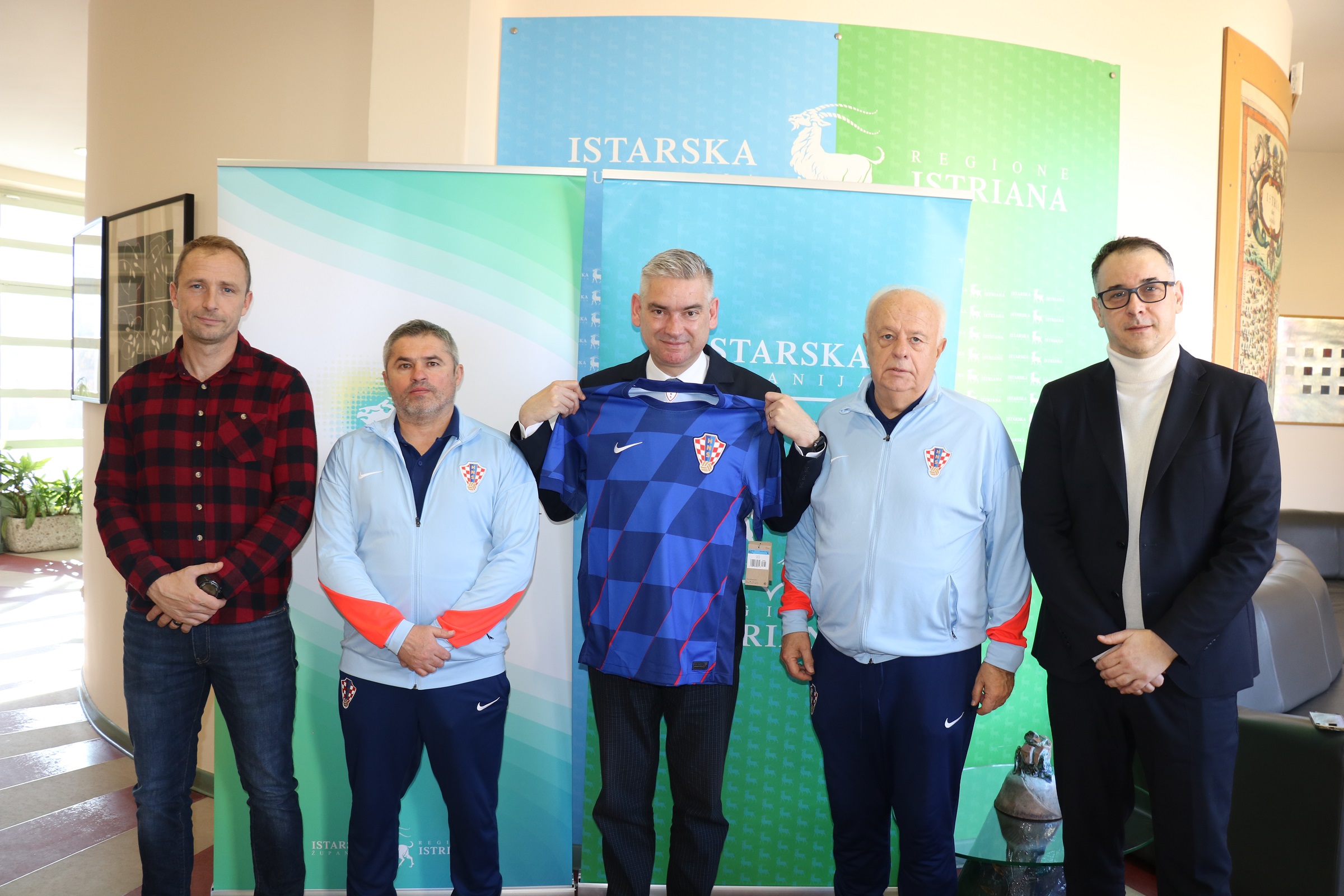 Hrvatska futsal reprezentacija prvu će utakmicu kvalifikacija za Europsko prvenstvo 2026. godine u Litvi i Latviji igrati danas, u Domu sportova „Mate Parlov“ u Puli, protiv reprezentacije Azerbajdžana, a tim povodom je jučer istarski župan Boris Miletić, zajedno s pročelnikom Upravnog odjela župana Ivanom Glušcem, primio koordinatora futsalskih reprezentacija Borisa Durlena, izbornika hrvatske futsalske reprezentacijeMarinka Mavrovića i predsjednikaMNK Stanoinvest Futsal Pula Valtera Cetinu.