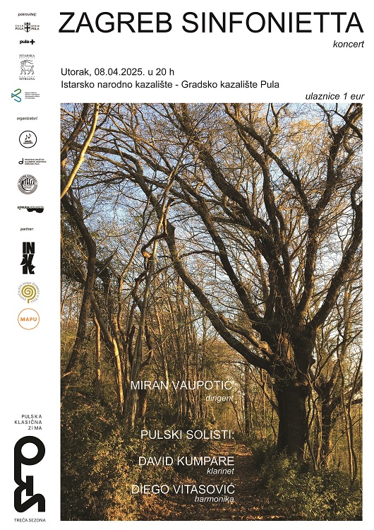 Ovaj ciklus ne samo da obogaćuje kulturni život grada Pule u zimskim mjesecima, već stvara i vrijedne, dugoročne suradnje, odnosno partnerstva koja omogućuju zajedničko muziciranje renomiranih gostujućih umjetnika i vrhunskih domaćih glazbenih snaga. Koncert zatvaranja ovogodišnjeg ciklusa u znaku je prvog pulskog nastupa ansambla Zagreb Sinfonietta – gudačke sekcije Zagrebačkog simfonijskog orkestra koju predvodi naš proslavljeni dirigent svjetskog ugleda maestro Miran Vaupotić. Orkestru će se priključiti poznati pulski udaraljkaši Vedran Vojnić i Sebastian Stell, te izvršni producent ciklusa – pijanist Sandro Vešligaj. Kao solisti predstavit će se vrhunski glazbenici mlađe generacije, harmonikaš Diego Vitasović i klarinetist David Kumpare.