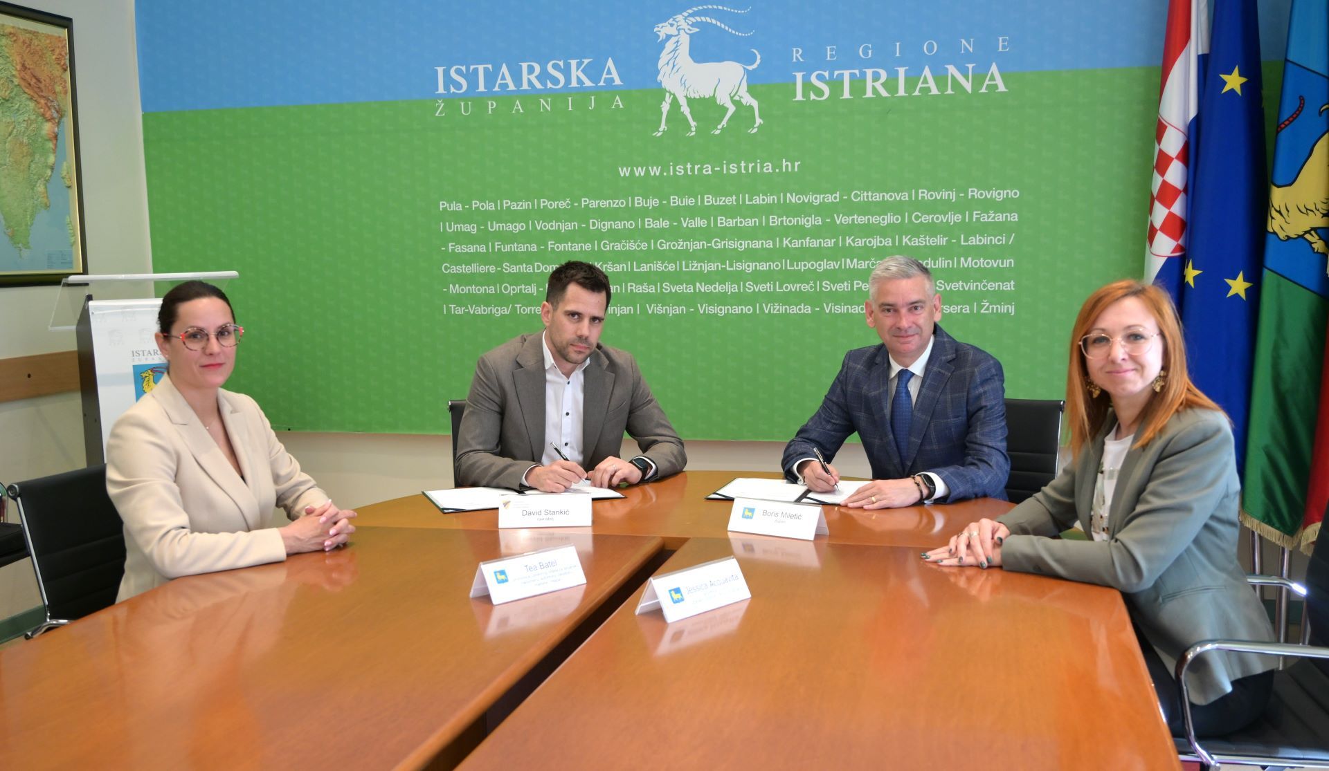 Istarski župan Boris Miletić potpisao je danas, u sjedištu Istarske županije u Puli, s ravnateljem Županijske uprave za ceste Istarske županije Davidom Stankićem Ugovor o namjenskom utrošku sredstava za dvojezičnu prometnu signalizaciju. Događaju su prisustvovale i zamjenica župana Jessica Acquavita i pročelnica Upravnog odjela za talijansku nacionalnu autohtonu zajednicu, nacionalne manjine i mlade Tea Batel.