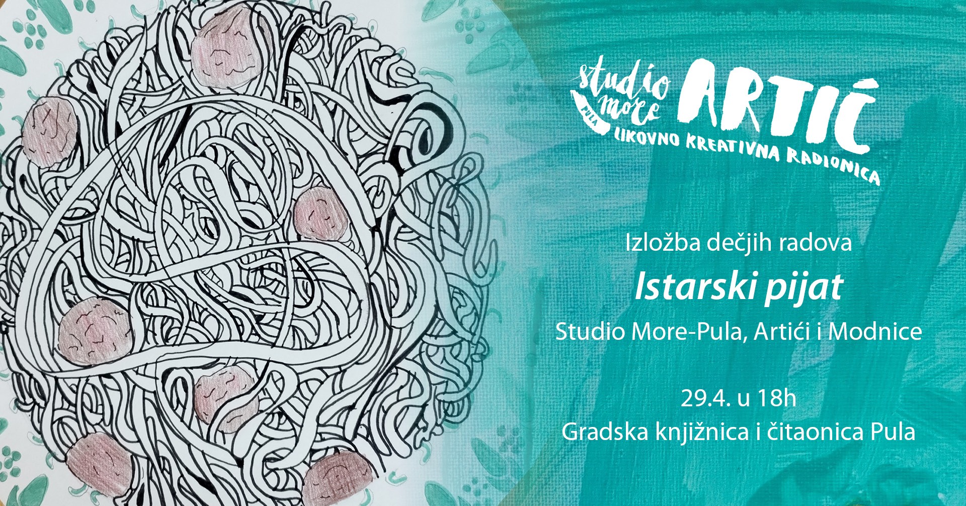 Istarski pijat godišnja je izložba polaznika Artića i Modnice Studija More Pula, koji djeluje dvadeset i tri godine te likovnost i kreativnost predstavlja kroz različite tehnike s težnjom individualnog pristupa svakog polaznika. U ovogodišnjoj izložbi dominira kružni format koji se provlači kroz cijeli postav.