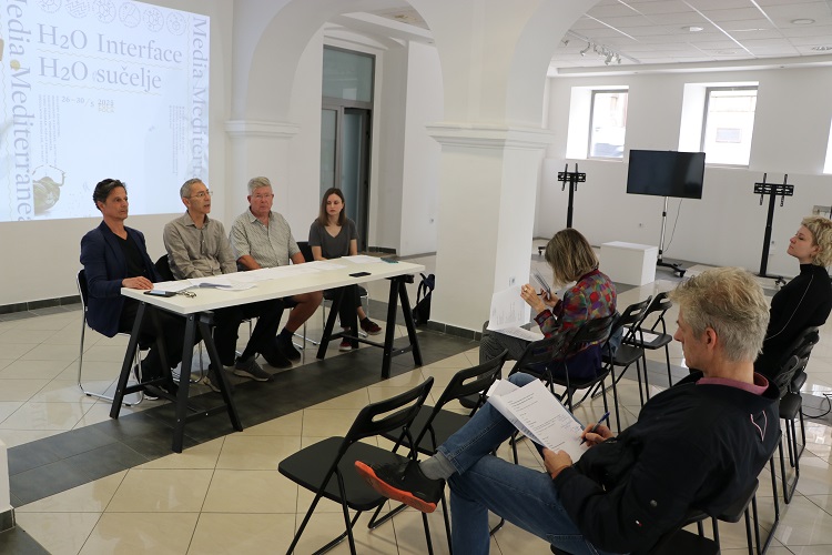– Zaključili smo da ne. Samim time odabrao sam globalnu temu koja sve pokriva – voda kao sučelje – hardver u svim agregatnim stanjima. Imamo rad Karle Brunet gdje je to led, kruto stanje vode – led koji se otapa u glečerima i snimke zvukova tog procesa. Agregatno stanje pare imamo u radu Tonija Meštrovića, koji će biti predstavljen kroz interaktivnu instalaciju, a proces će biti moguće gledati i uživo i kroz medijski prijenos. Što se tekućeg stanja tiče tu je puno radova. Festival će primjerno prikazati novi rad Leah Barclay – audio šetnju po gradu koja će sadržavati zvukove iz drugih dijelova planete vezanih uz vodu, a prvenstveno rijeku i deltu Amazone. Imamo tu i dva njena rada koji su povezani s Mediteranom u formi interaktivnih kartografija. Sami mediji prisutni na ovoj izložbi su vrlo su vrlo različiti – od interaktivnih instalacija, vođenih audio šetnji, digitalnih grafika te skulptura o kojima će vam Nigel nešto kasnije reći. S nama je i slovenska umjetnica Robertinu Šebjanič koja se bavi izumiranjem školjaka u Jadranskom moru i šire, s radom koji će biti predstavljen u galeriji te s radom u video programu u Malom rimskom kazalištu koji problematizira rijeku. Tu je još i Dijana Protić, umjetnica iz Hrvatske, koja je za malteško Bijenale prošle godine napravila produkciju na temu ženskog piratstva. U ovom je slučaju voda: more – ekonomsko sučelje obrađeno kroz prizmu žena, ženskih naracija i feminističke povijesti. Taj trokanalni rad bit će prikazan prvi put u Hrvatskoj na ovoj izložbi, kazao je kustos Fritz i predao riječ Nigelu Helyeru.