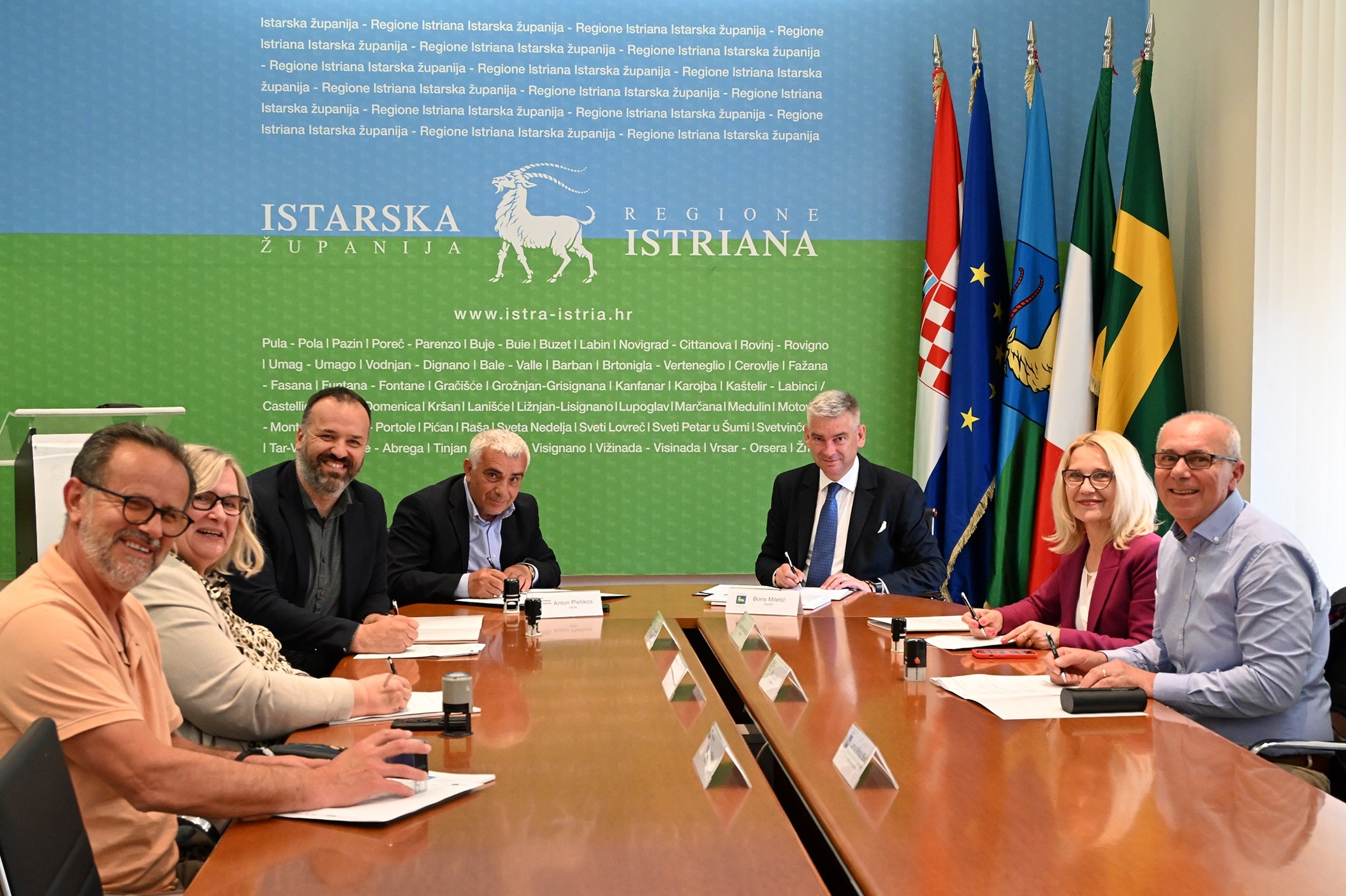 Uz Ugovor o financiranju i predfinanciranju između Istarske županije i Zajednice tehničke kulture Istarske županije, danas je potpisan i Sporazum o partnerstvu kojega su uz istarskog župana Borisa Miletića i tajnika Zajednice tehničke kulture Istarske županije Antona Pletikosa, potpisali i ravnatelji i ravnateljice Nikola Vujačić iz Gimnazije Pula, Suzana Poropat Božac iz Gimnazije i strukovne škole Jurja Dobrile Pazin, Đani Žufić iz Srednje škole Mate Blažina Labin, Predrag Brkić iz Osnovne škole Jože Šurana Višnjan i Jadranka Bartolić Muzica iz Osnovne škole Vazmoslav Gržalja Buzet.