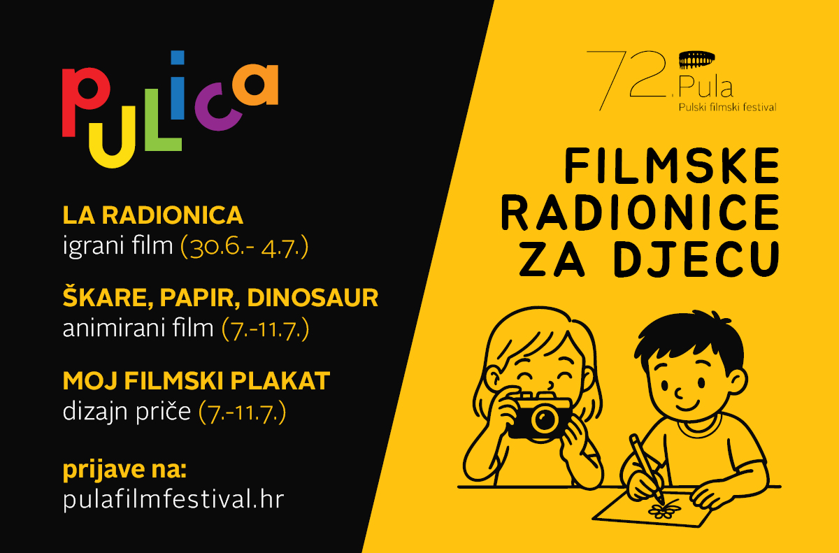 Prijave na sve radionice otvorene su do 23. lipnja, a broj polaznika po radionici ograničen je na 10. Više detalja o radionicama i o voditeljima, kao i o detaljnijem rasporedu i pogodnostima plaćanja za obitelji s više prijavljene djece, pročitajte na stranicama Pulskog filmskog festivala.