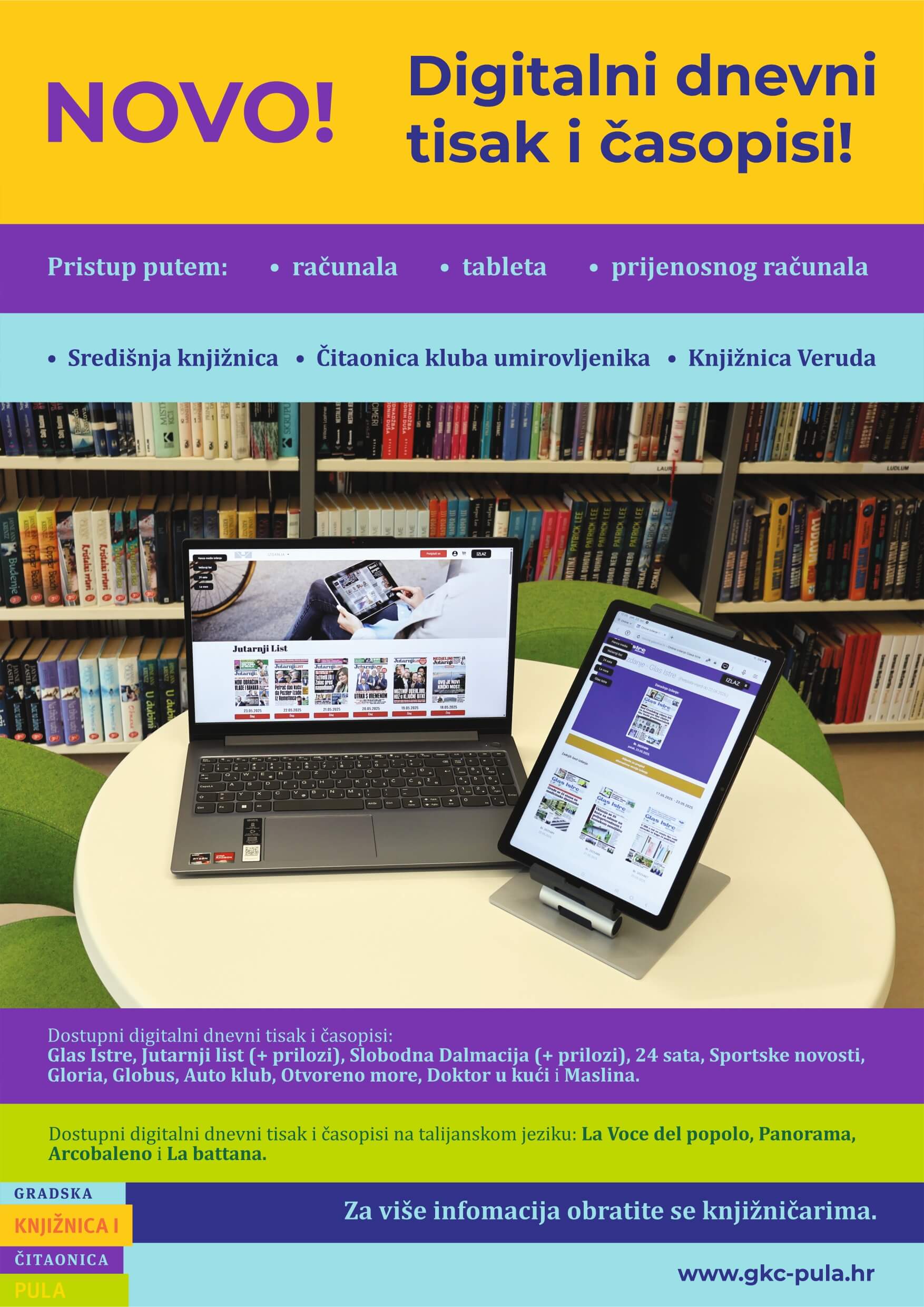 Gradska knjižnica i čitaonica Pula uvela je novu uslugu kojom im omogućuje pristup digitalnim izdanjima dnevnog tiska i časopisa.