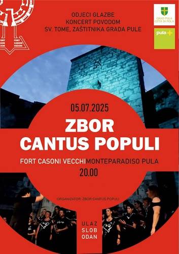 U subotu, 5. srpnja, s početkom u 20 h, u utvrdi Casoni Vecchi (Monteparadiso) te uz pokroviteljstvo Turističke zajednice grada Pule i Grada Pule, održat će se „Odjeci glazbe”, cjelovečernji koncert pulskog mješovitog pjevačkog zbora Cantus PoPuli koji djeluje pod vodstvom dirigentice i osnivačice Tatjane Merkl.