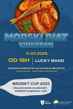 Morski pjat u Vinkuranu se održava u petak, 11. srpnja. Svi ste pozvani u lučicu Vinkuran gdje od 18 sati kreće još jedan Brodet cup uz odličnu svirku Lucky banda. Svoju ekipu za spremanje brodeta još uvijek stignete prijaviti putem E-mail adrese: morskipjat@gmail.com.