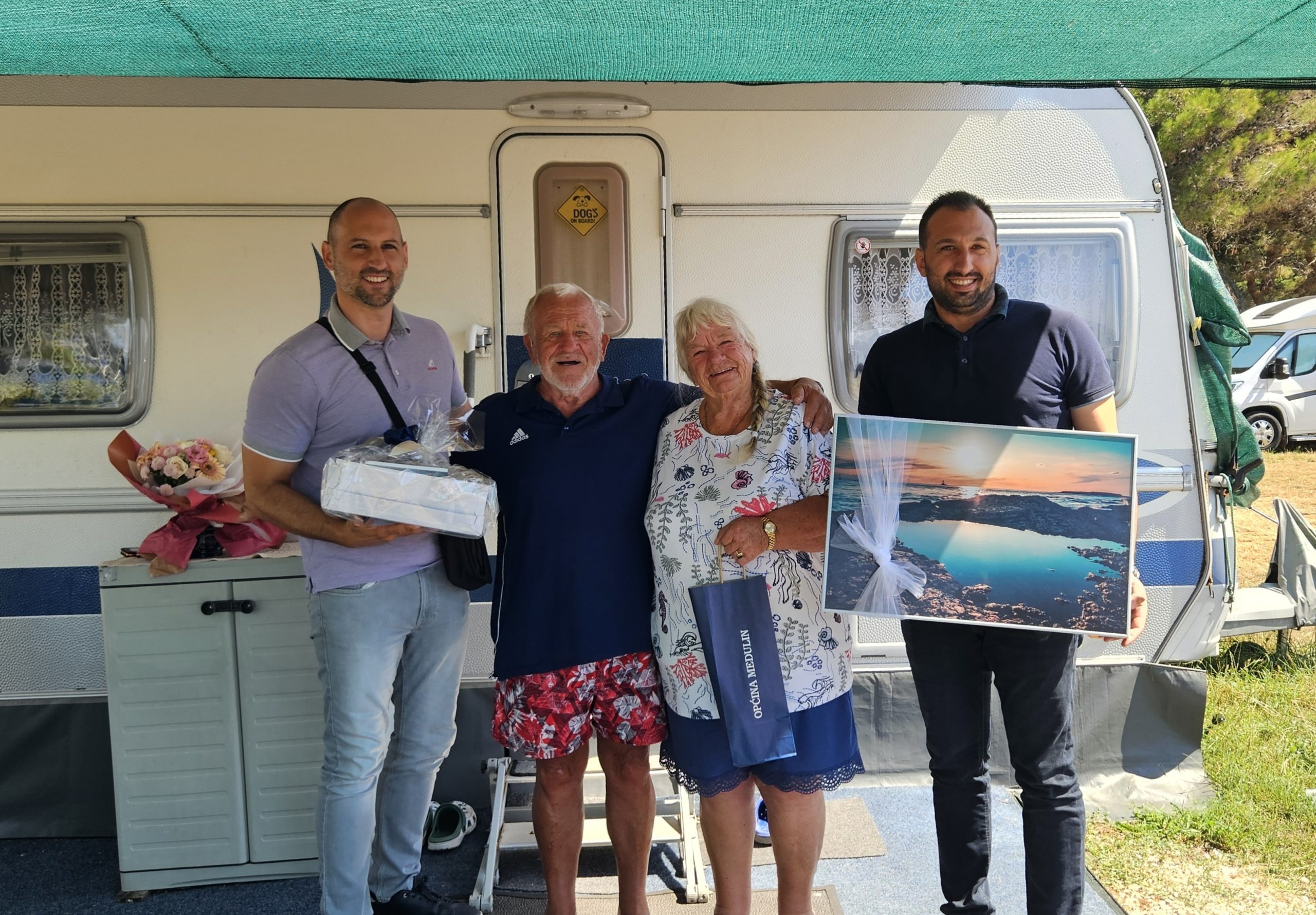 Veselo je bilo danas u Arena Grand Kažela kampu, gdje su se okupili načelnik Općine Medulin Ivan Kirac i direktor Turističke zajednice Mihael Idžaković sa suradnicima, kako bi izrazili zahvalnost dugogodišnjim gostima obitelji Griess iz njemačkog mjesta Alsbach.