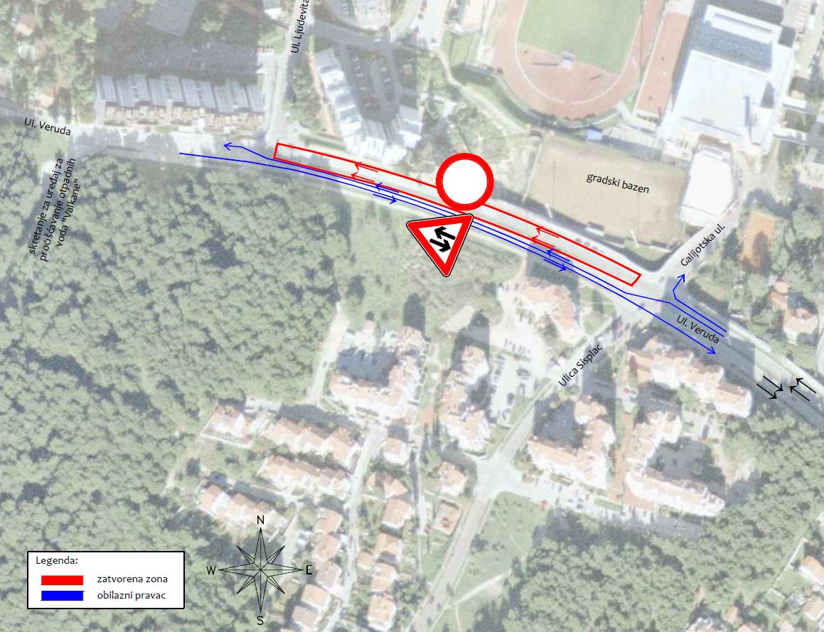 Zbog izvođenja radova na sanaciji kolnika uvodi se privremena regulacija prometa na dijelu Ulice Veruda u Puli od raskrižja s Galijotskom do raskrižja s Ulicom Ljudevita Posavskog.