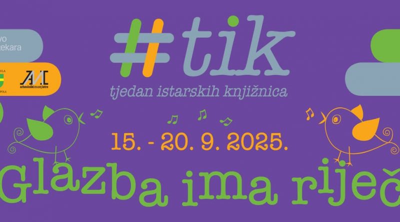 Ovogodišnji Tjedan istarskih knjižnica – TIK, manifestacija u organizaciji Društva bibliotekara Istre, održat će se od 15. do 20. rujna 2025. godine pod sloganom Glazba ima riječ.