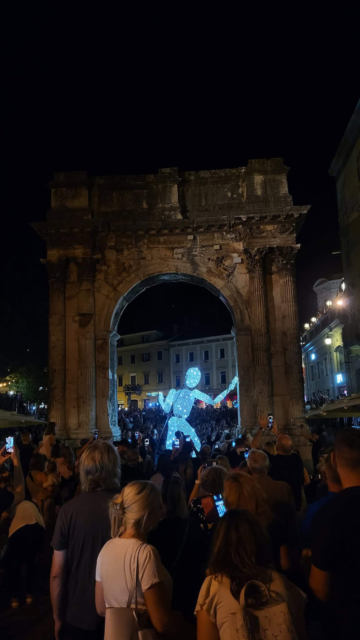 Samo par koraka dalje na pročelju Arheološkog muzeja posjetitelji su mogli uživati u 3d mappingu kojeg su ranijih godina imali prilike gledati na pročeljima Foruma. A odmah iza u Malom rimskom kazalištu na monumentalnom ekranu odvijala se interaktivna fuzija „selfija“ posjetitelja i pulskih skulptura u sklopu instalacije „Faces“ talijanskog Onda Studija.