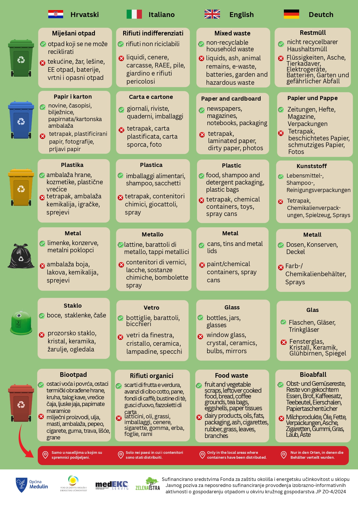 Općina Medulin u sklopu projekta izradila tiskani/digitalni materijal o smanjenju i selekciji otpada za mještane i turiste