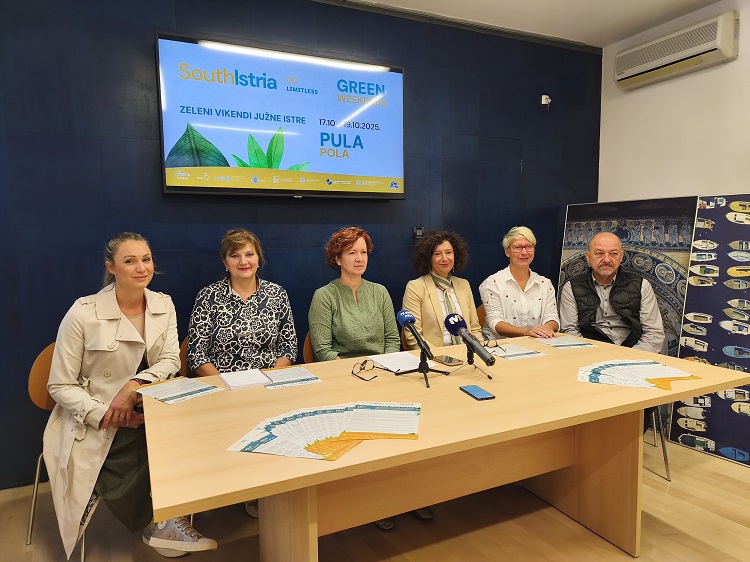 Danas je u prostoru Turističke zajednice Pula održana tiskovna konferencija na kojoj je predstavljen program manifestacije Zeleni vikendi južne Istre, koju su organizirale sve turističke zajednice Klastera južne Istre, a koja će se u Puli održati od 17. do 19. listopada 2025. Manifestacija je posvećena održivom načinu života, zdravim navikama i harmoniji s prirodom, a kroz tri dana obuhvatit će niz radionica, predavanja, rekreativnih aktivnosti, program za djecu te ponudu domaćih proizvoda. Klaster južne Istre je za manifestaciju Zeleni vikendi dobio i sredstva od Hrvatske turističke zajednice.