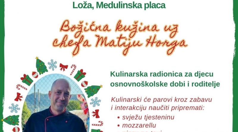 U subotu, 6. prosinca, u sklopu programa ADVENTure na medulinskoj placi, održati će se 1. kulinarska radionica „Božićna kužina uz chefa Matiju Horga“.