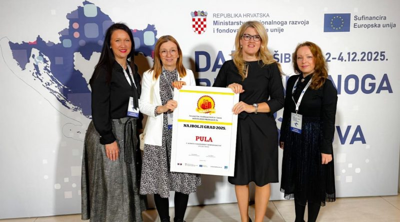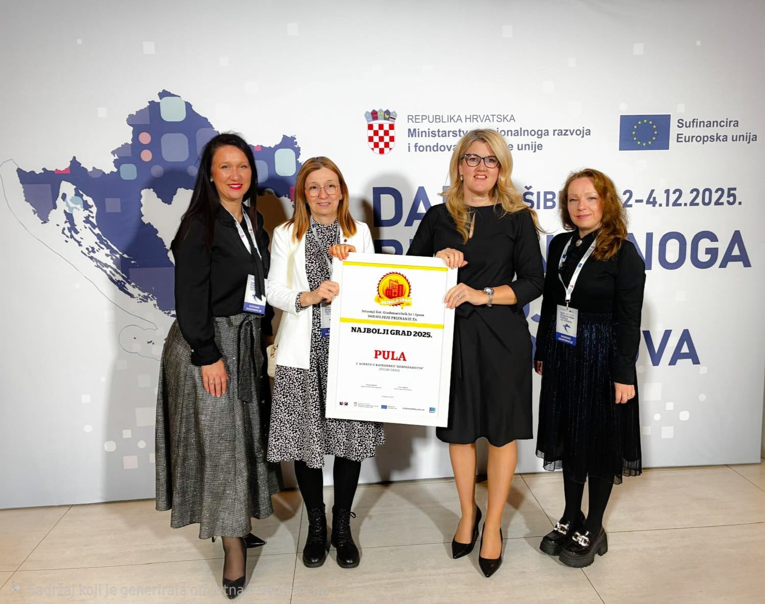 Grad Pula – Pola osvojio drugo mjesto „Najbolji grad 2025.“ u kategoriji Gospodarstvo
