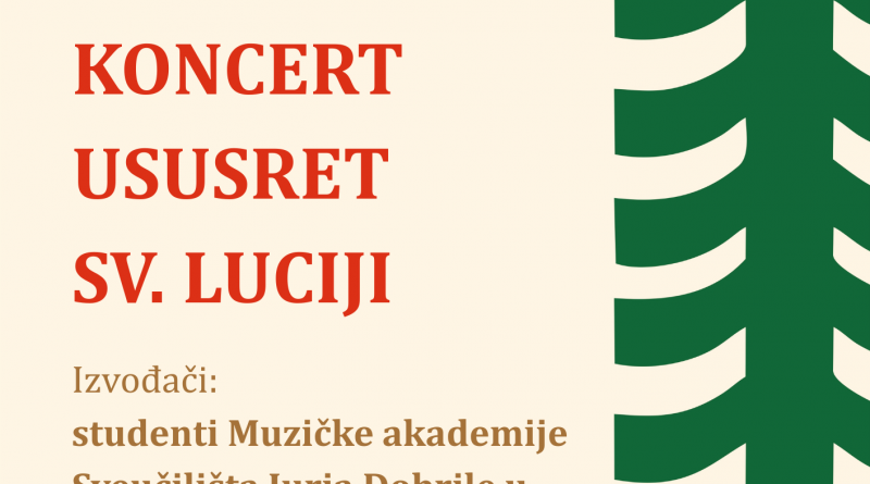 Studentice i studenti Muzičke akademije Sveučilišta Jurja Dobrile u Puli održat će u srijedu, 10. prosinca 2025. u Središnjoj knjižnici tradicionalni koncert u povodu blagdana svete Lucije.