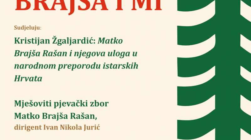 Program počinje u 18 sati te je dio manifestacije Advent u Puli. Ovom prigodom predavanje Matko Brajša Rašan i njegova uloga u narodnom preporodu istarskih Hrvata održat će Kristijan Žgaljardić te će nastupiti Mješoviti pjevački zbor Matko Brajša Rašan, kojim će dirigirati Ivan Nikola Jurić.