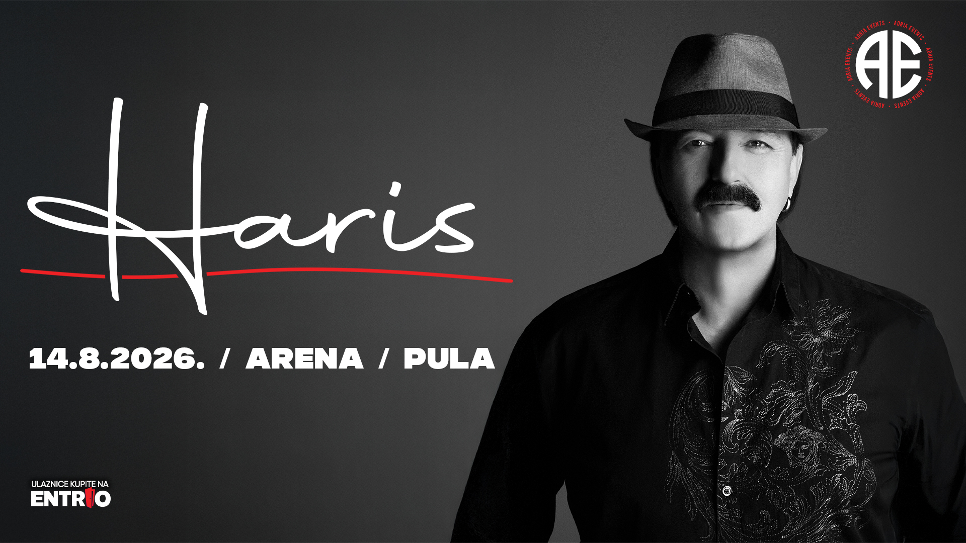 Jedan od najcjenjenijih i najdugovječnijih glazbenika regionalne scene, Haris Džinović, održat će veliki koncert u pulskoj Areni u petak, 14. kolovoza 2026. godine. Publiku u jedinstvenom ambijentu jednog od najljepših antičkih amfiteatara očekuje večer ispunjena emocijama, bezvremenskim hitovima i vrhunskom interpretacijom po kojoj je Haris poznat već desetljećima a ulaznice će biti dostupne od petka, 19. prosinca na prodajnim mjestima Entrio i na entrio.hr.