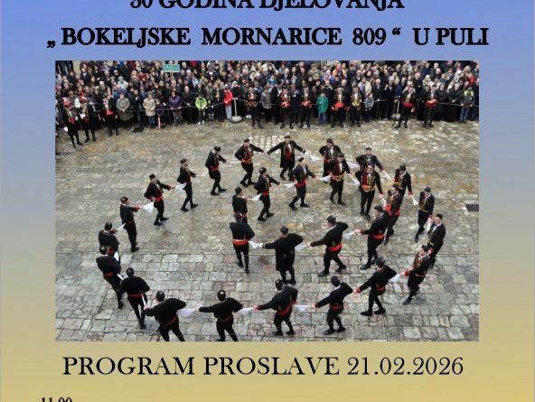 U subotu, 21. veljače 2026. godine, u vremenu od 11:00 do 12:45 sati, održat će se svečani mimohod članova Hrvatske bratovštine Istarske županije Bokeljska mornarica 809 povodom 30. obljetnice rada udruženja.