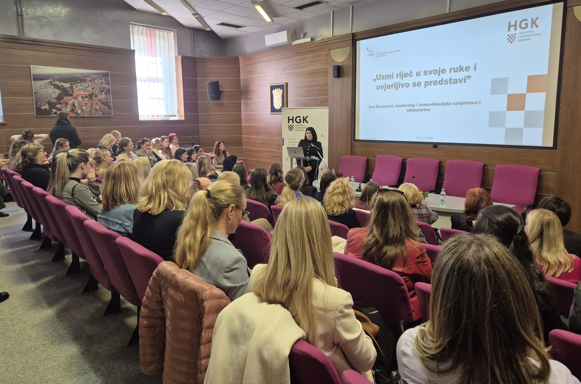 Na skupu koji su organizirali HGK – ŽK Pula i Udruga poslovnih žena Krug Ogranak Istra uzvanice su imale priliku čuti savjete o osobnom i profesionalnom nastupu lidership i komunikacijske savjetnice i edukatorice Ane Šimunović.