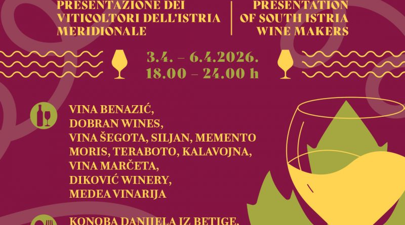 Posjetiteljima će se predstaviti deset vinara južne Istre: Benazić, Dobran, Šegota, Siljan, Teraboto, Marčeta, Kalavojna, Memento Moris, Diković i Medea.