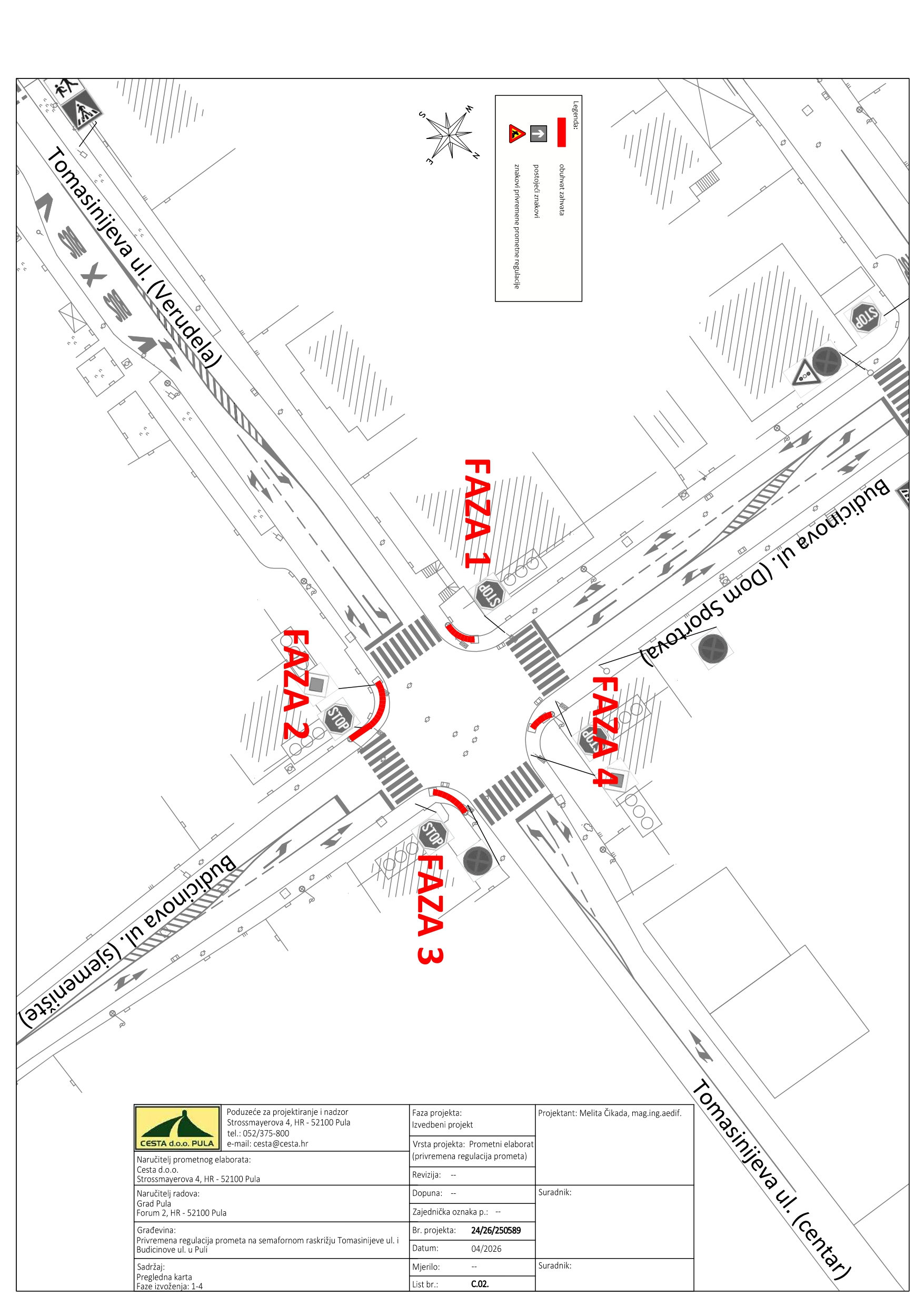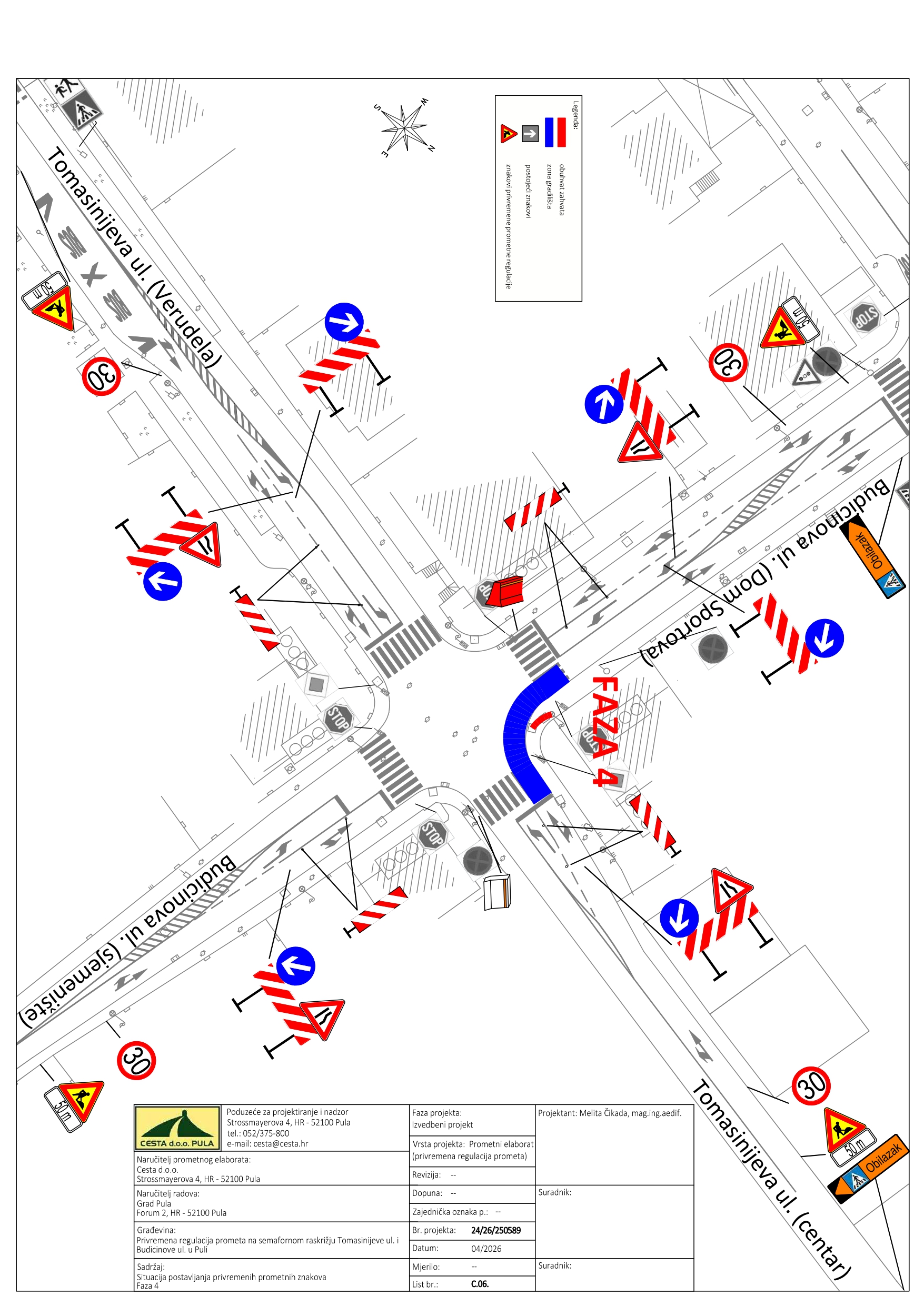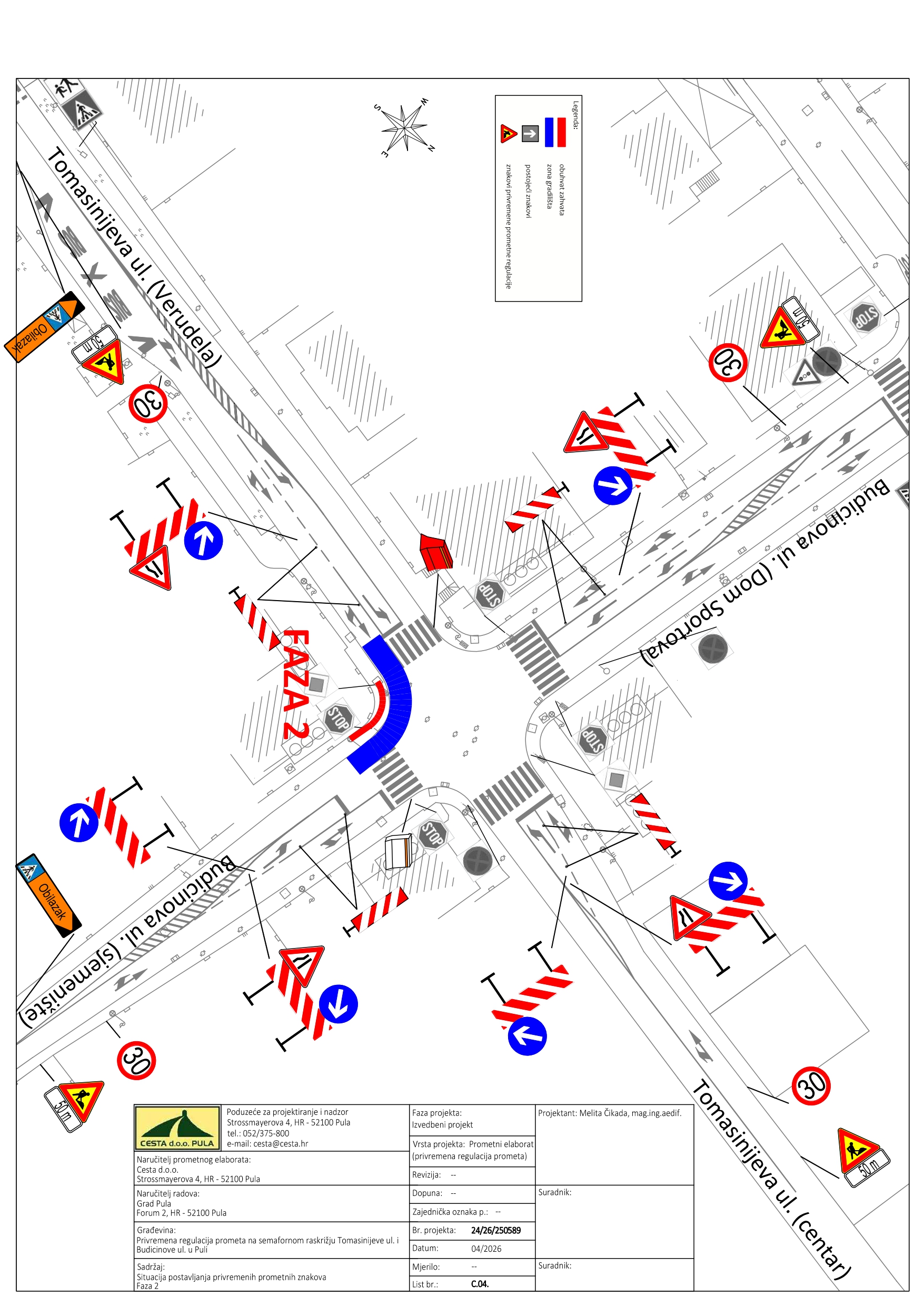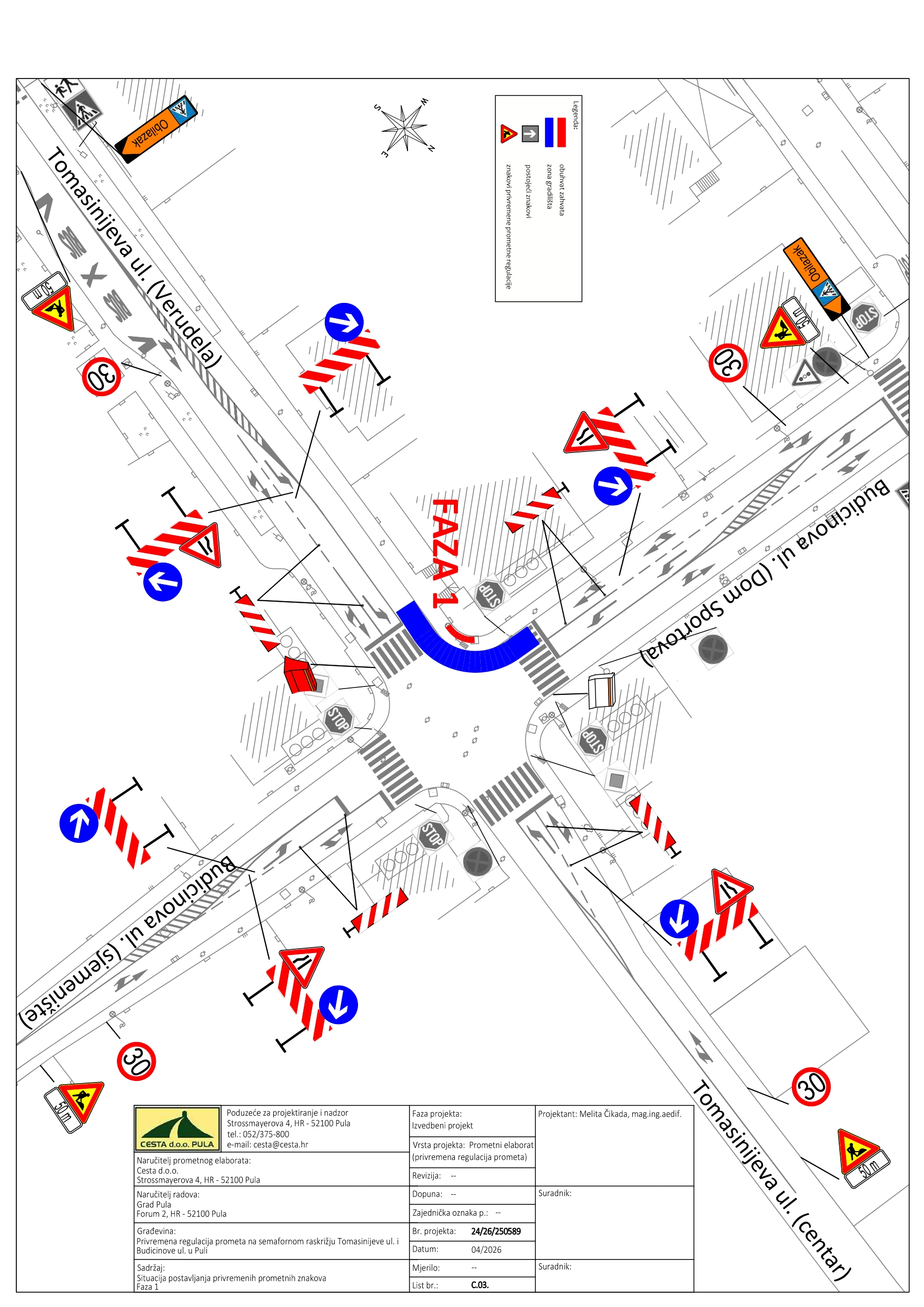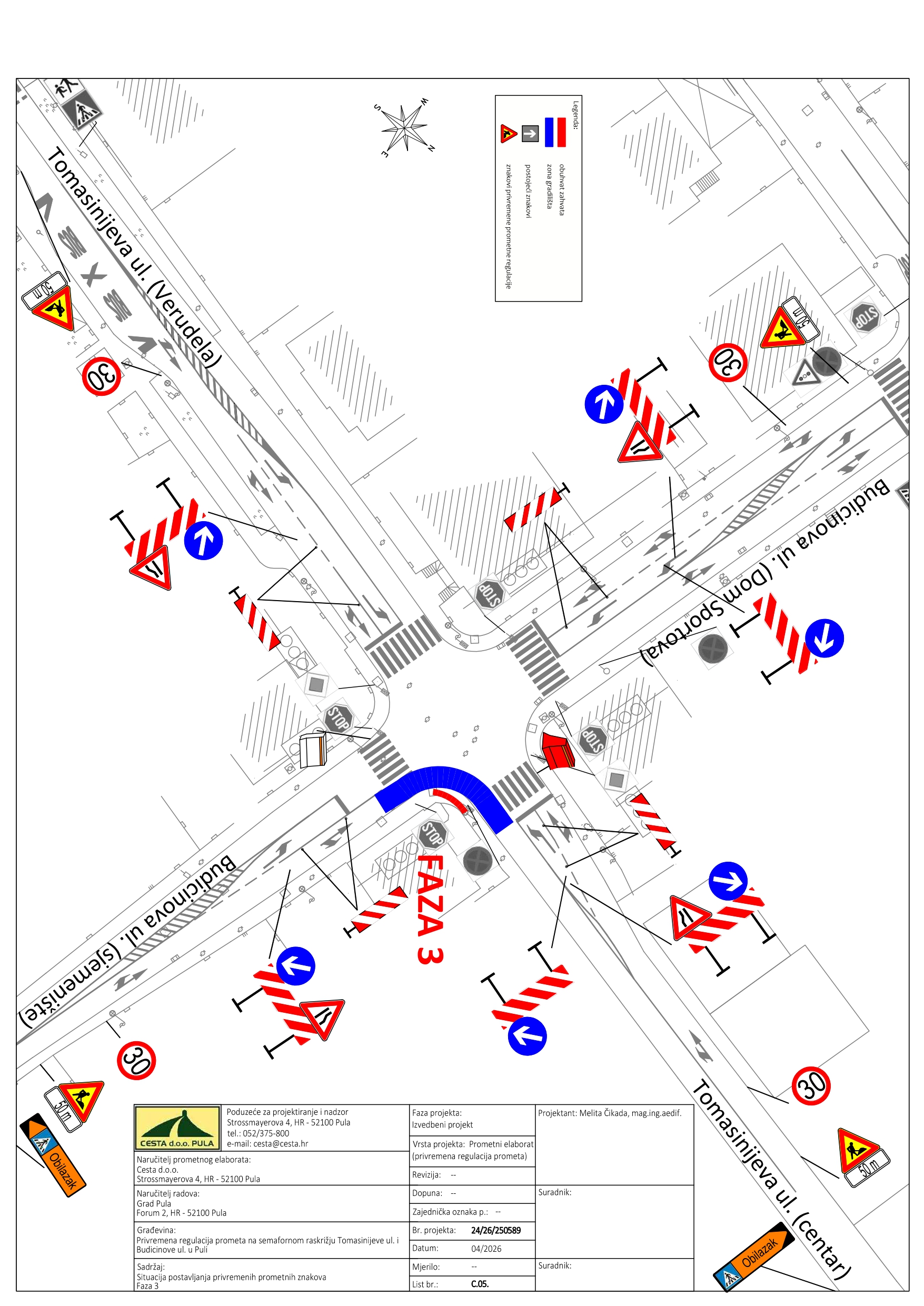 U utorak, 28.04.2026. godine, izvođač radova VINTIJAN d.o.o. uvodi privremenu regulaciju prometa na raskrižju Budicinove i Tomasinijeve ulice.