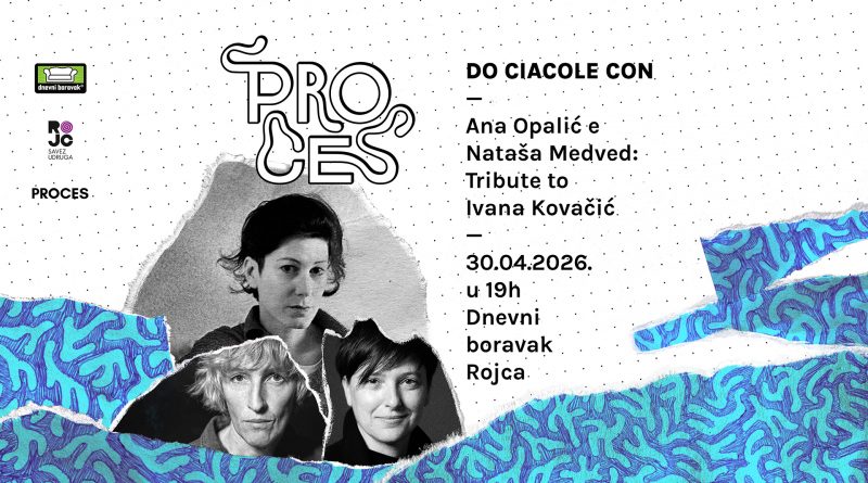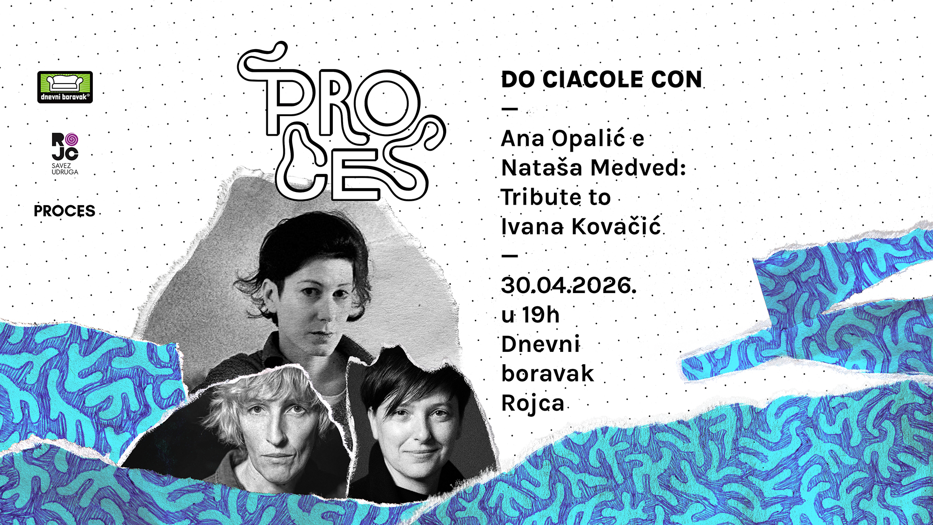 Udruga Proces najavljuje prvo ovogodišnje izdanje programa “Do ciacole con…”, koje će se održati 30. travnja u Dnevnom boravku Rojca s početkom u 19 sati. Ovoga puta program dolazi u nešto drugačijem, intimnijem formatu. Umjesto razgovora s jednim autorom, publika će imati priliku prisustvovati susretu i dijalogu dviju umjetnica: fotografkinje i glazbenice Ane Opalić te prevoditeljice i urednice Nataše Medved, dok će razgovor moderirati članica udruge Proces Andrea Vidović.